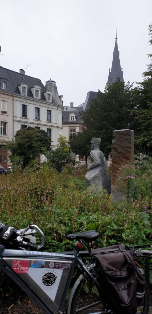 Première halte de la caravane, le monument au Capitaine Dreyfus, né à Mulhouse, victime symbolique d’un antisémitisme français que la Ligue des Droits de l’Homme condamne et combat, comme tous les racismes, comme l’a rappelé à la caravane son Président local, Gérard Moine.