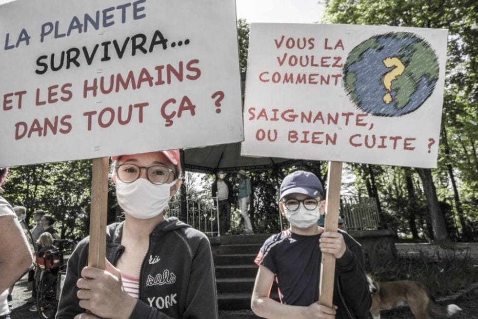 Les slogans fusaient bon train à le long d’une manifestation principalement familiale, avec un « On est plus chaud que le climat », ou « 1 et 2 et 3 degrés, c’est un crime contre l’humanité ».