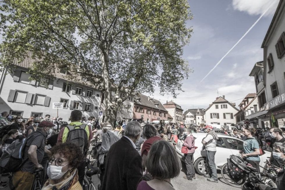 Plus de 450 personnes s’étaient rassemblées à partir de 10h au parc de la Marseillaise de Guebwiller, à l’appel notamment des associations Alternatiba, Alsace nature, Florival en transition, et le Collectif citoyen de Guebwiller.