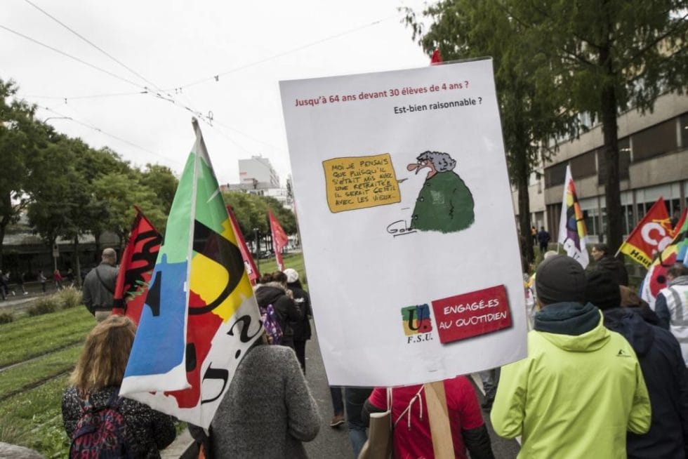 Tous les syndicats n’appelaient pas à la tenue de cette journée de protestation. On y discernait notamment les bannières de la CGT (salariés et retraités du public et du privé), de la FSU (enseignants du 1° et du 2° degré), mais aussi des représentants de la France insoumise, d’Europe Ecologie-Les Verts, du Parti communiste, du NPA (Nouveau parti anticapitaliste).