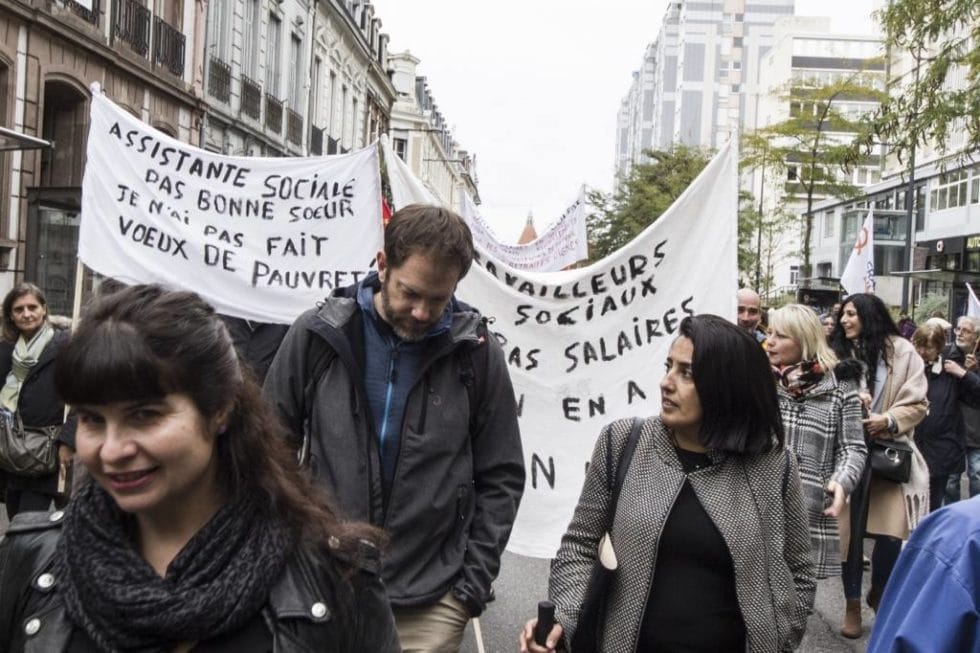 Outre les marcheurs bien repérables du mouvement social, on comptait également des syndicalistes étudiants de la CSTE (communauté solidaire des terres de l’Est), premier syndicat mulhousien, des travailleurs sociaux, tout comme ceux de la culture, ainsi que des agents territoriaux, dont des ATSEM.