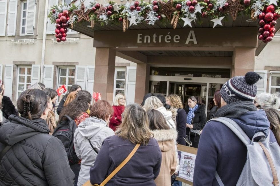 Poil à gratter particulièrement urticant au gout de Michèle Lutz, maire de Mulhouse (en raison des tambourins et trompettes entonnant leur envie d’être enfin entendues), une quarantaine d’agents techniques spécialisés des écoles maternelles (ATSEM), sur 175 personnels toutes catégories confondues, ont cessé hier le travail, et se sont réunies devant l’entrée A de la mairie, ainsi qu’elles procèdent lors de leurs manifestations.