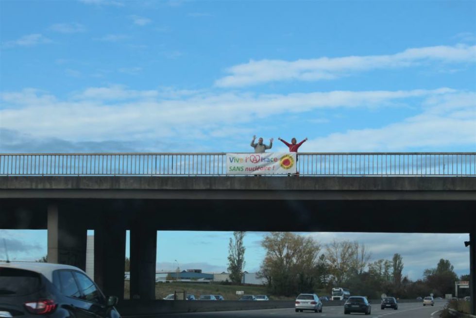 De Mulhouse à Sélestat, en passant par Colmar, les militants antinucléaires ont ainsi déroulé des banderoles sur 4 ponts d’autoroutes. Dont le pont de Bourtzwiller à Mulhouse.