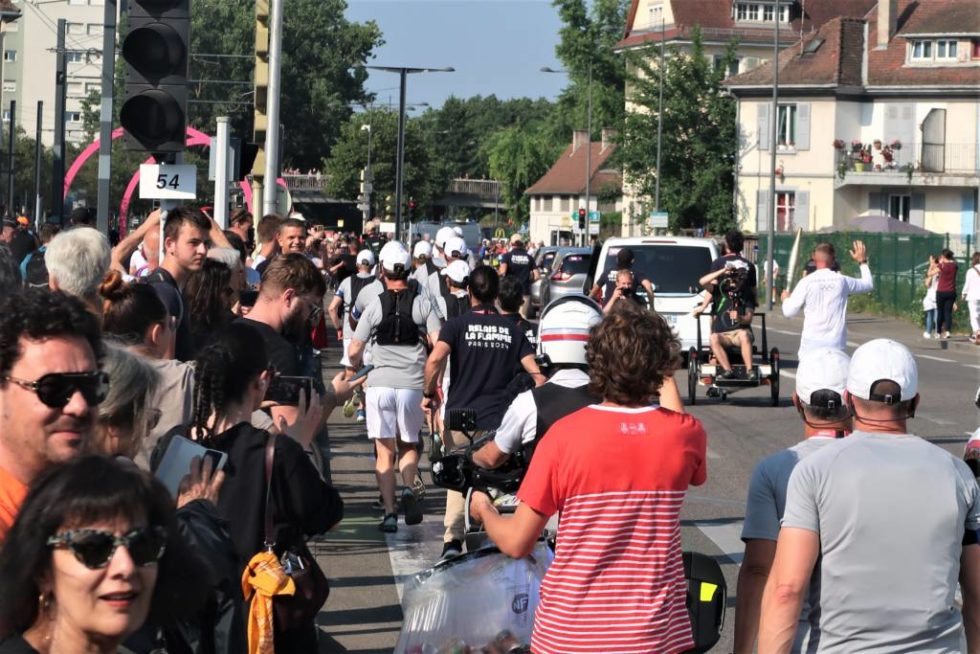 Les premiers spectateurs se pressaient dès 7 heures du matin le long du parcours de la flamme à Mulhouse. Les sportifs relayeurs assurant son avancée de 8h30 à 9h30, jusqu’au stade de l’Ill.