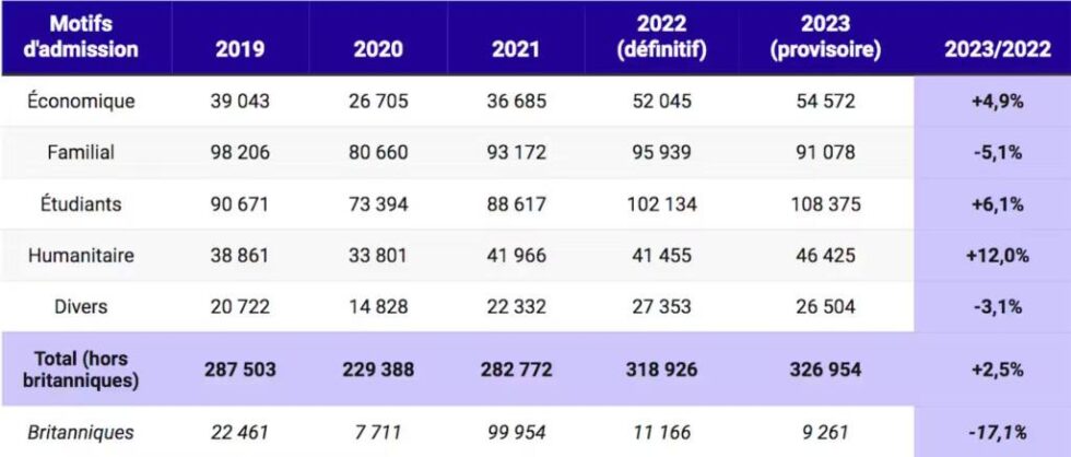 Derrière ces chiffres, il y a de nombreux statuts différents qui distinguent les étrangers. On parle souvent des primo-arrivants dans le discours politique. Or, ces arrivées sont relativement stables, avec à peu près 300 000 personnes par an. Parmi elles, un tiers sont des étudiants qui ont vocation à ne pas rester, un autre tiers correspond à l’immigration familiale. Le dernier tiers se décompose en immigration de travail et titres de séjour humanitaire délivrés pour les réfugiés.