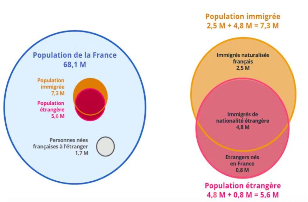 Notons que, parmi ces 8,2 %, il y a à peu près 3,5 % d’Européens. Or souvent, derrière le mot étranger, on pense à des non-Européens qui ne représentent finalement que 6 % de la population française.