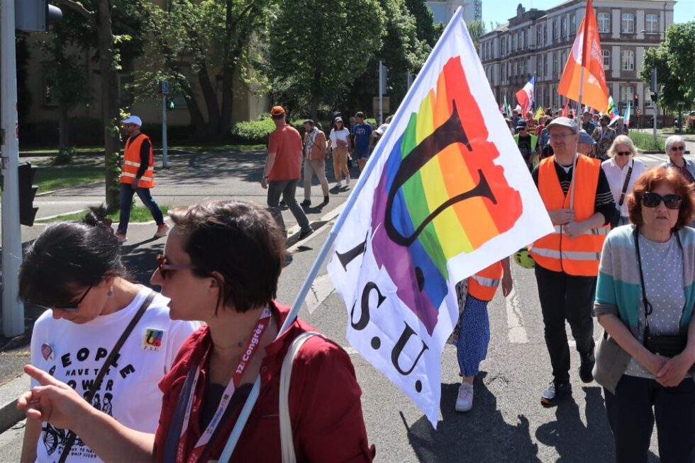 À Mulhouse, la manifestation s’est élancée depuis la place de la Bourse vers 11h, menée par la CGT, avec les cheminots du technicentre TER, actuellement en grève et en négociation, qui ouvraient le cortège. Cette édition 2025 a marqué un regain de participation, avec près de 2 000 personnes, soit plus du double de l’année précédente.
