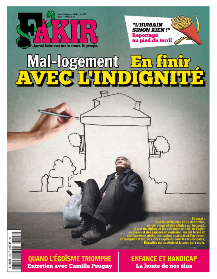 Fakir, né en 1999 à Amiens de la colère de François Ruffin face à la désindustrialisation ignorée par la presse locale, fête ses 25 ans. Il nait du mot « fac » + « ire » (colère en latin) = fakir). Rédacteur en chef depuis 4 ans (Ruffin étant député), Cyril Pocréaux défend un « journalisme gonzo« , incluant immersion personnelle, sans théorie, sans préparation du terrain, pour embarquer le lecteur (« On raconte l’arrière-cuisine« ).