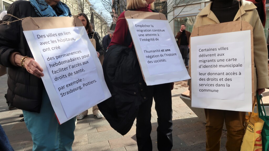 À quelques jours du premier tour des élections municipales, une manifestation s’est tenue à Mulhouse le samedi 7 mars 2026 pour défendre un accueil digne et inconditionnel des personnes exilées.