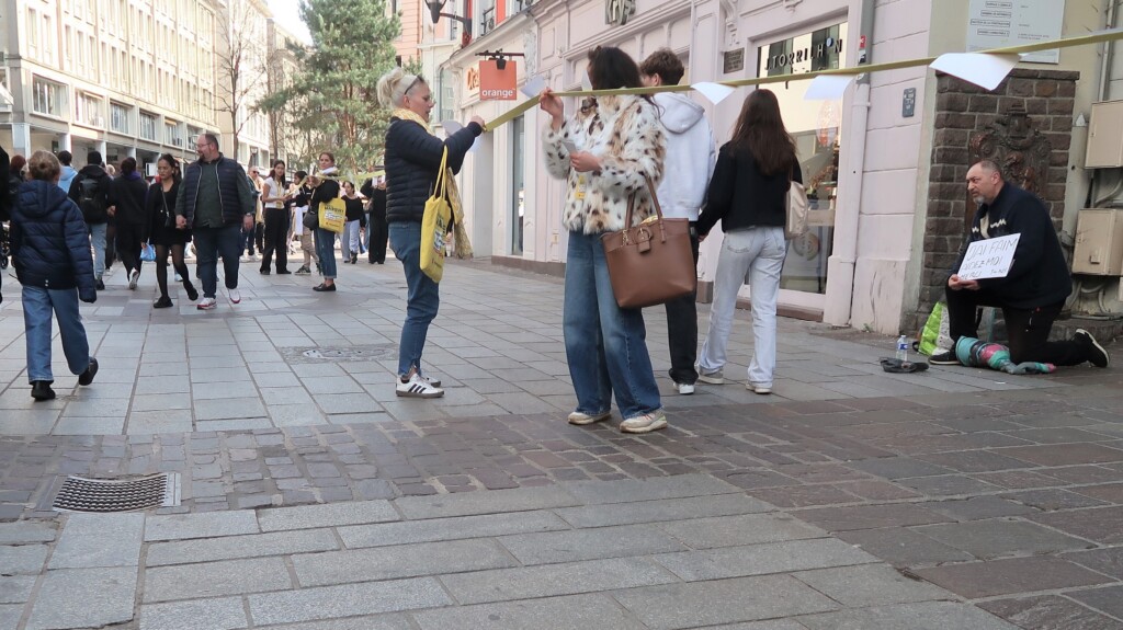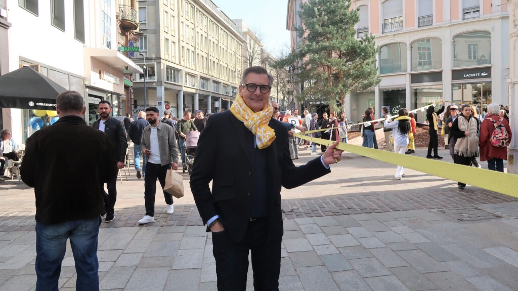 A noter que Frédéric Marquet est venu déployer un ruban jaune long de plusieurs dizaines de mètres, entre la place de la Réunion et la rue du Sauvage, sur lequel figurait des messages positifs, dont on a pas bien compris s’il s’agissait d’une action répondant au contenu de la manifestation.