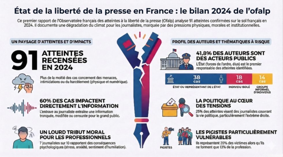 Créé en 2023 pour sortir de la simple « impression » d’une dégradation du climat médiatique, l’Ofalp livre ici son premier rapport annuel. Rendu public le 9 février 2026, il dissèque rigoureusement l’année 2024.