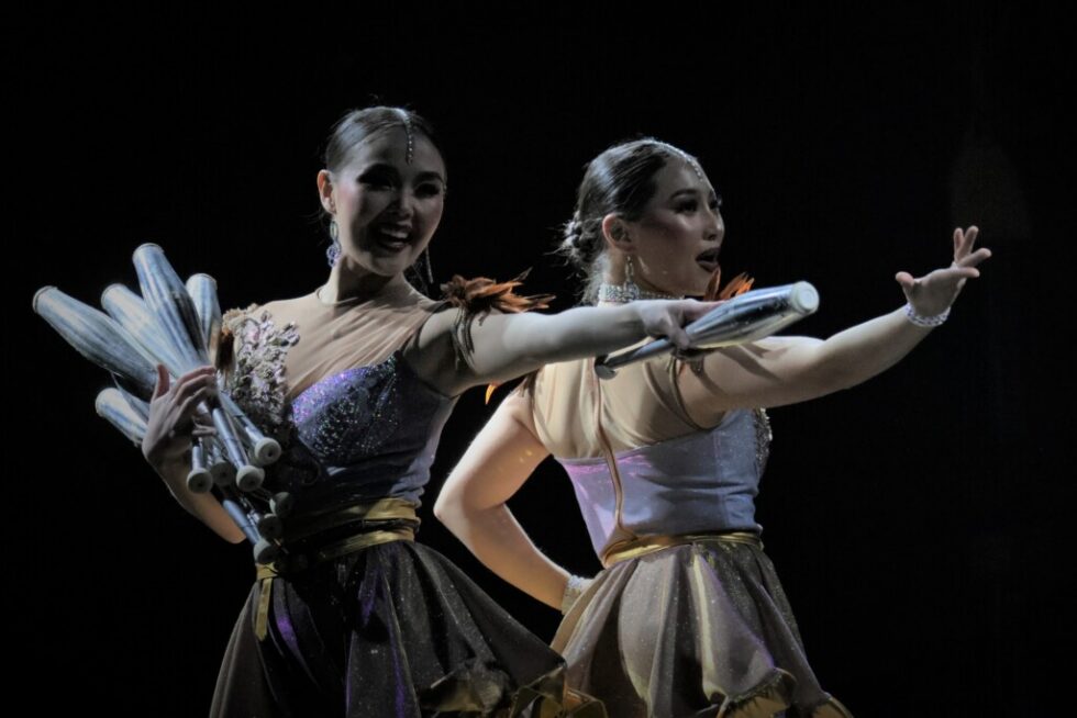 Les acrobates se nourrissent des encouragements du public pour accomplir leurs prouesses, telles les jongleuses qui se précipitent en se lançant les quilles et glissent avec aisance sur les quelques échecs de réception, avant de se muer en acrobates, dont l’une retient l’autre par un seul pied…