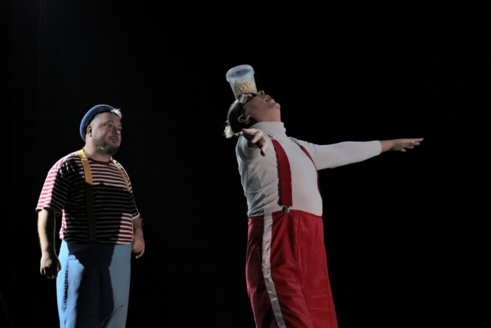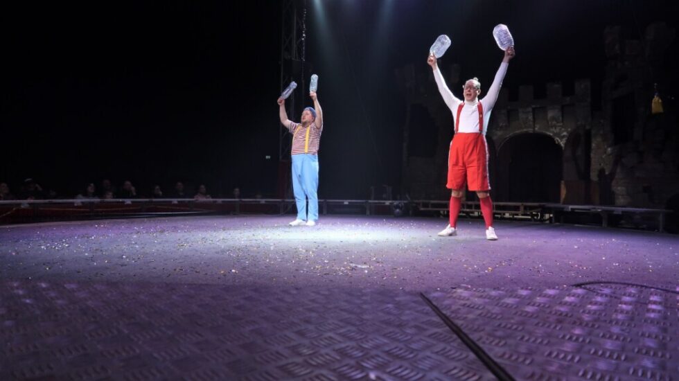 Animant la scène entre deux numéros menés sans temps morts, les clowns viennent taquiner les spectateurs à qui ils demandent d’ouvrir la bouche pour se jouer d’eux comme d’otaries sur lesquelles sont projetés des popcorns !