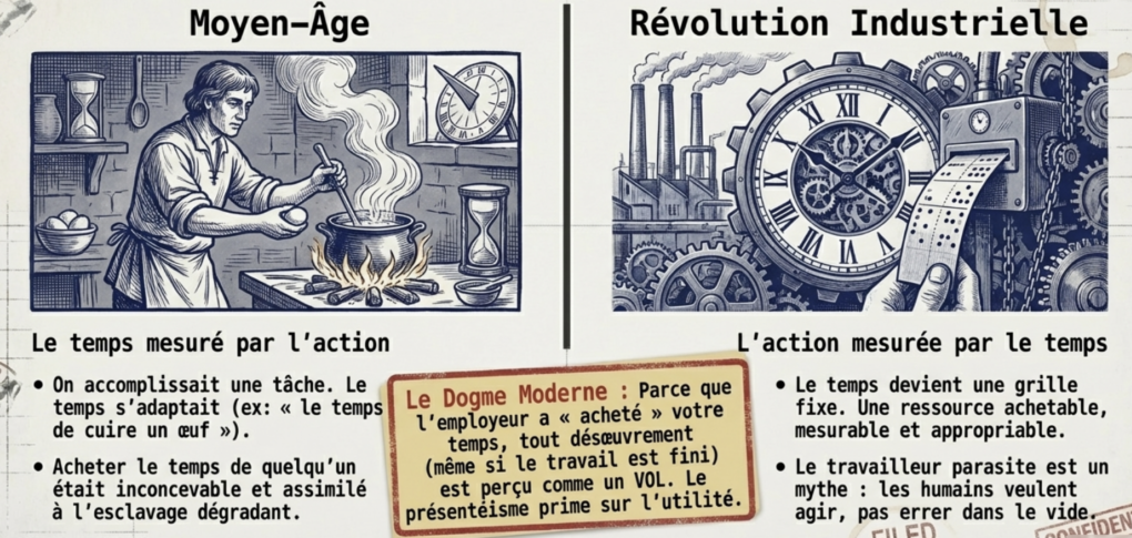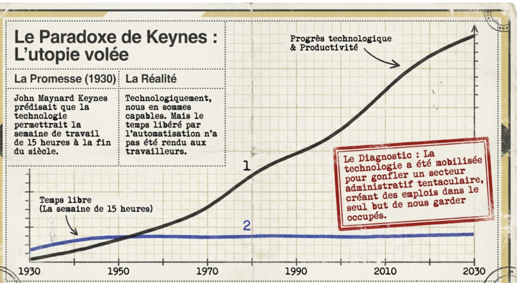 Pour Graeber, l’explication n’est pas économique, mais politique et culturelle. Il compare notre économie à une nouvelle forme de féodalité (le « managérialisme ») où la richesse est redistribuée non pas pour la production, mais pour maintenir des hiérarchies complexes de seigneurs et de vassaux.