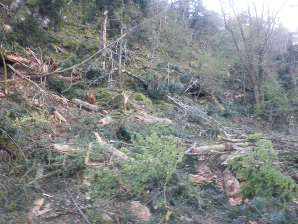 Aucun inventaire préalable de la faune n’a été réalisé. Le Parc naturel régional des Ballons des Vosges, présent dans les discussions, n’a visiblement pas obtenu que le marquage soit restreint au strict nécessaire. Résultat : le chantier avance à une vitesse impressionnante, sans que nul ne sache avec certitude si le marquage initial est seulement respecté sur des sujets perchés hauts dans la pente.
